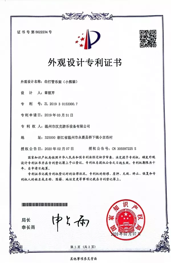 ஹாங்கின் சமீபத்திய தயாரிப்பாக, பாண்டா வடிவ தாள வாத்தியம். வெளிப்புற தீம் பூங்காக்கள், மழலையர் பள்ளிகள், தொடக்கப் பள்ளிகள், கருப்பொருள் உணவகங்கள் மற்றும் பிற இடங்களுக்கு அதன் அழகான வடிவமைப்பு காரணமாக இது மிகவும் பொருத்தமானது. வெவ்வேறு வண்ணங்களின் பதினொரு அலுமினியக் குழாய்களால் செய்யப்பட்ட மரிம்பா, பரந்த மற்றும் உயிரோட்டமான தொனியைக் கொண்டுள்ளது, இது குழந்தைகளுக்கு இசையின் வேடிக்கையை எளிதாக்குகிறது.